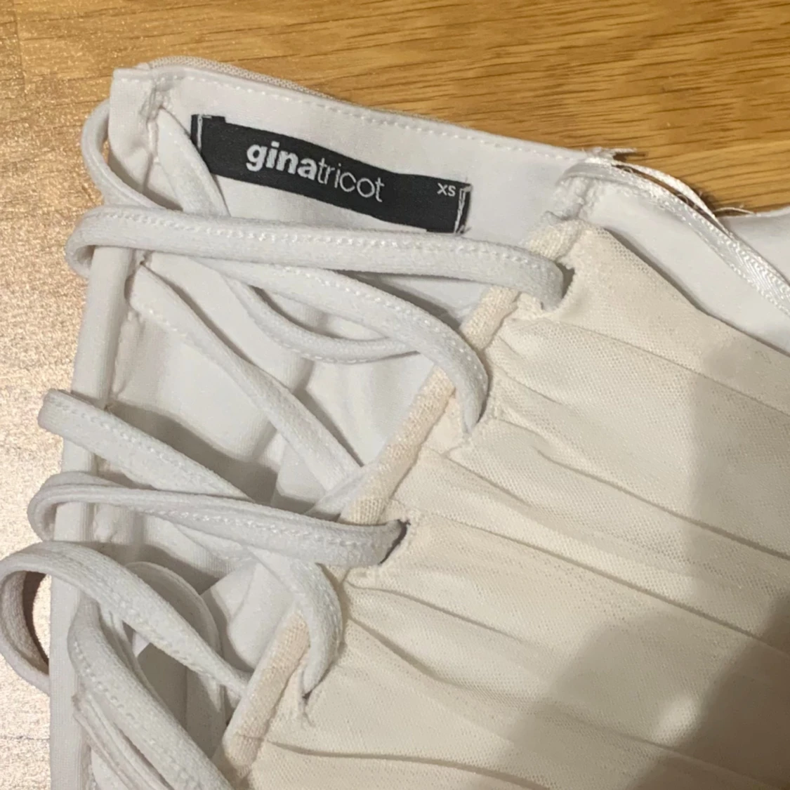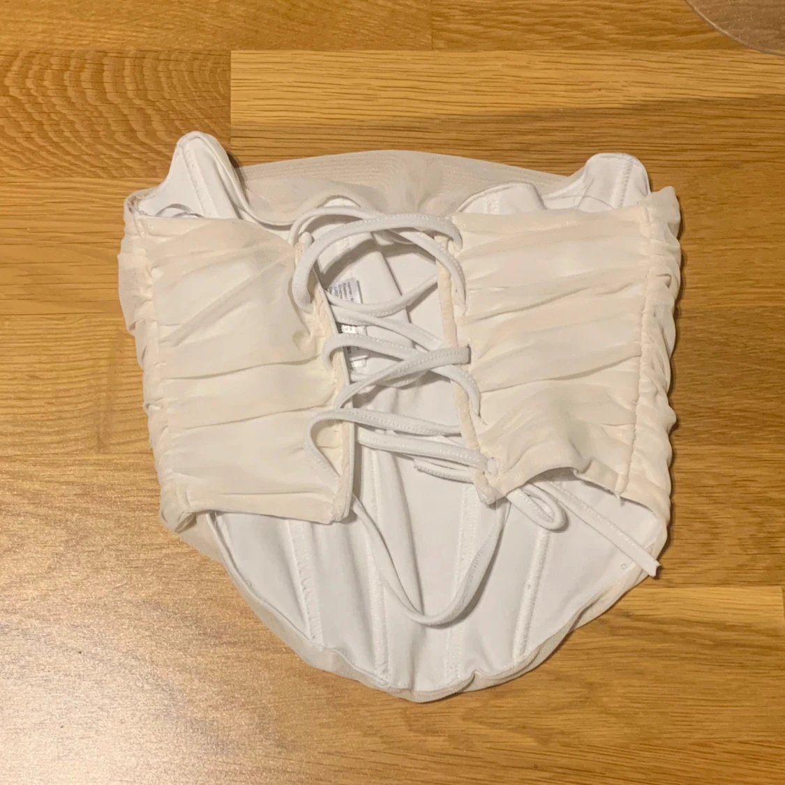Snygg vit beige korsett topp från Gina Tricot med snörning bak för en justerbar passform. Perfekt för sommaren och utekvällar.