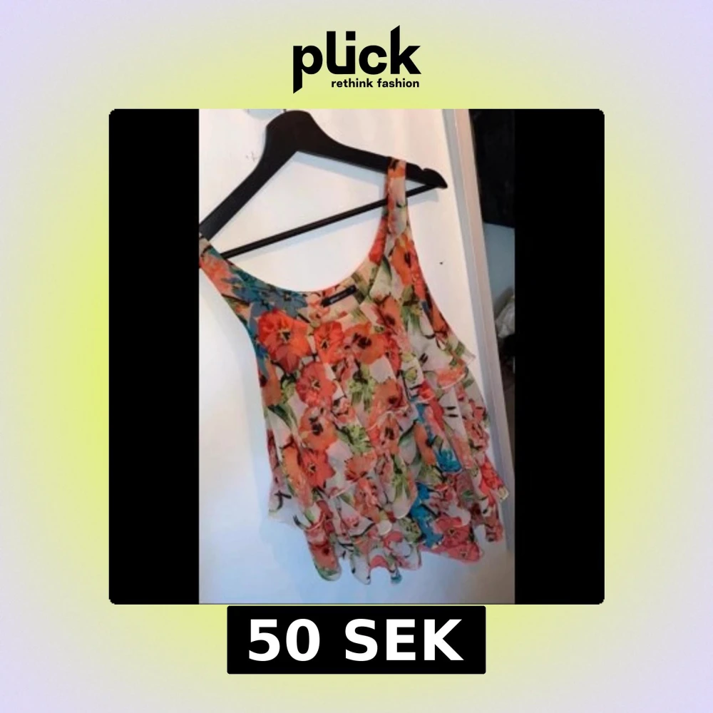 Blommigt linne med volanger och snedskurning längst ner. Sparsamt använd och har inga defekter. I strl 36 (S). Erbjuder rabatt vid köp av 2 eller fler produkter!