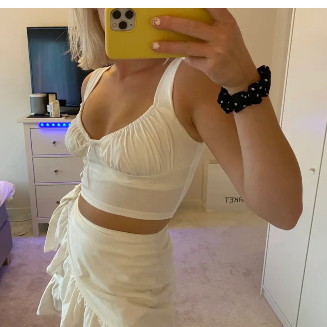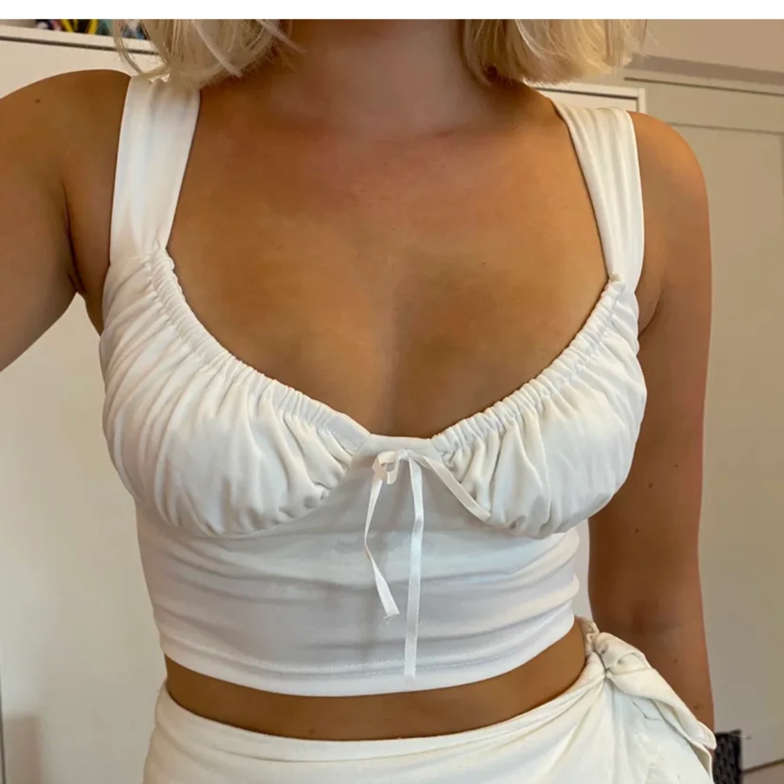 Supersnygg vit sommartopp i storlek small/36. Köpt här på plick men var tyvärr inte kommit till användning då den var för liten. Frakt tillkommer (Lånade bilder)