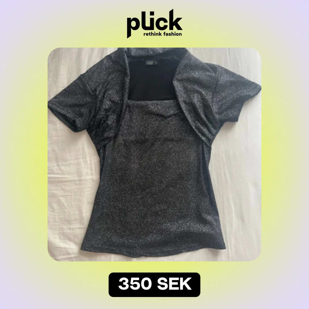 Super söt Festtopp med ”inbyggd” bolero! Passar perfekt till i sommar med unika detaljer⭐️svart med silvrigt glitter⭐️ Skulle uppskatta storleken till S💗🫶🏼