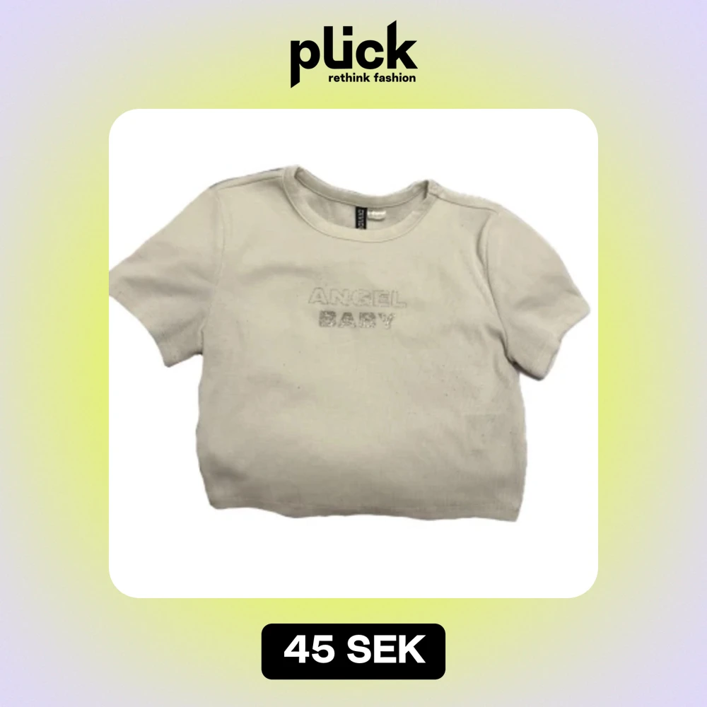 En söt vit ribbad croptop med silver glittrig text: ANGEL BABY. Inga defekter men lite nopprig (sänkt pris) som man ser på närbilden av trycket!!❤️ Ställ gärna frågor❤️✨