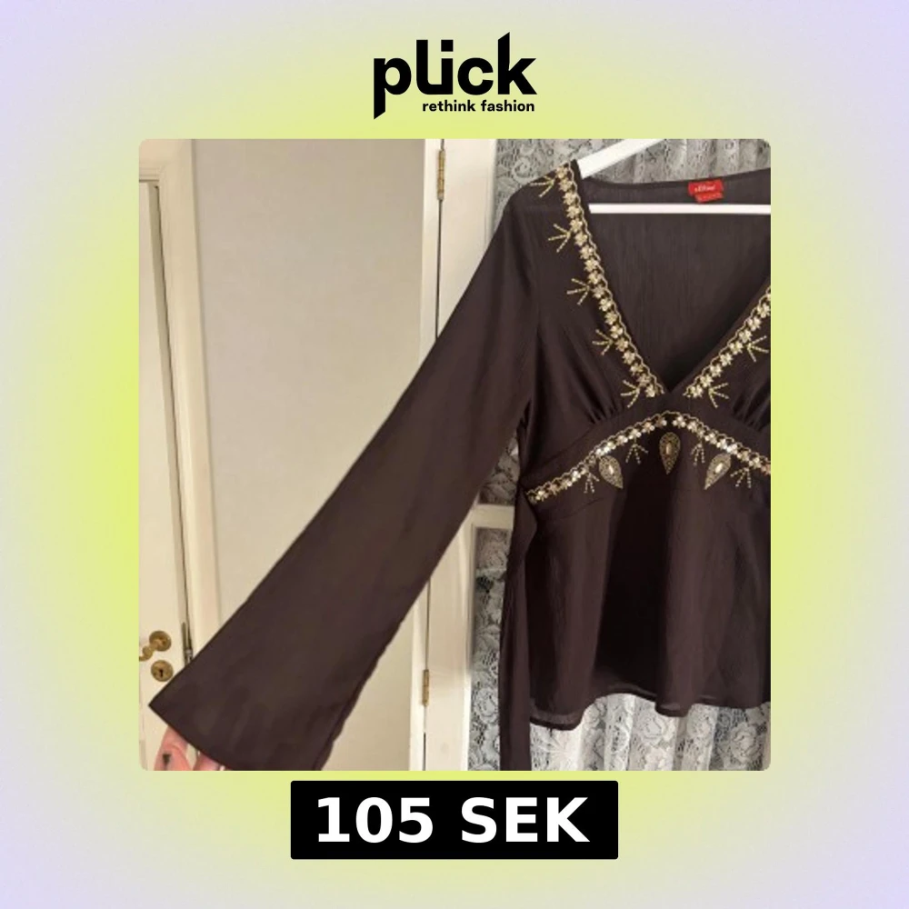 Säljer en elegant brun blus från s.Oliver med vackra broderade detaljer i guld och beige. Blusen har långa ärmar och en v-ringad design! Påminner lite om blisen från Nelly! Står att den är stl 44 men enligt mig så passar den en stl S
