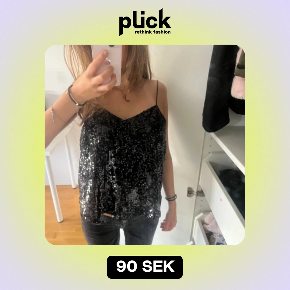 JĂ€ttefin glittertopp i svart som passar perfekt till fest eller festivaler! Den har inga tecken pĂ„ skador đ€đȘ© Kom privat för fler frĂ„gor!
