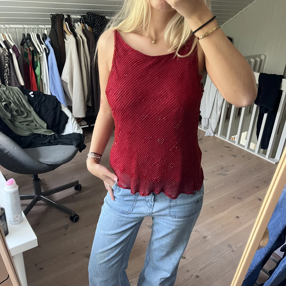 Asså snyggaaaaste toppen med pärlor/paljetter! Köpt dyrt secondhand! Storlek M men skulle säga S, går att ha bakofram så det blir lite djupare urringning❤️❤️❤️