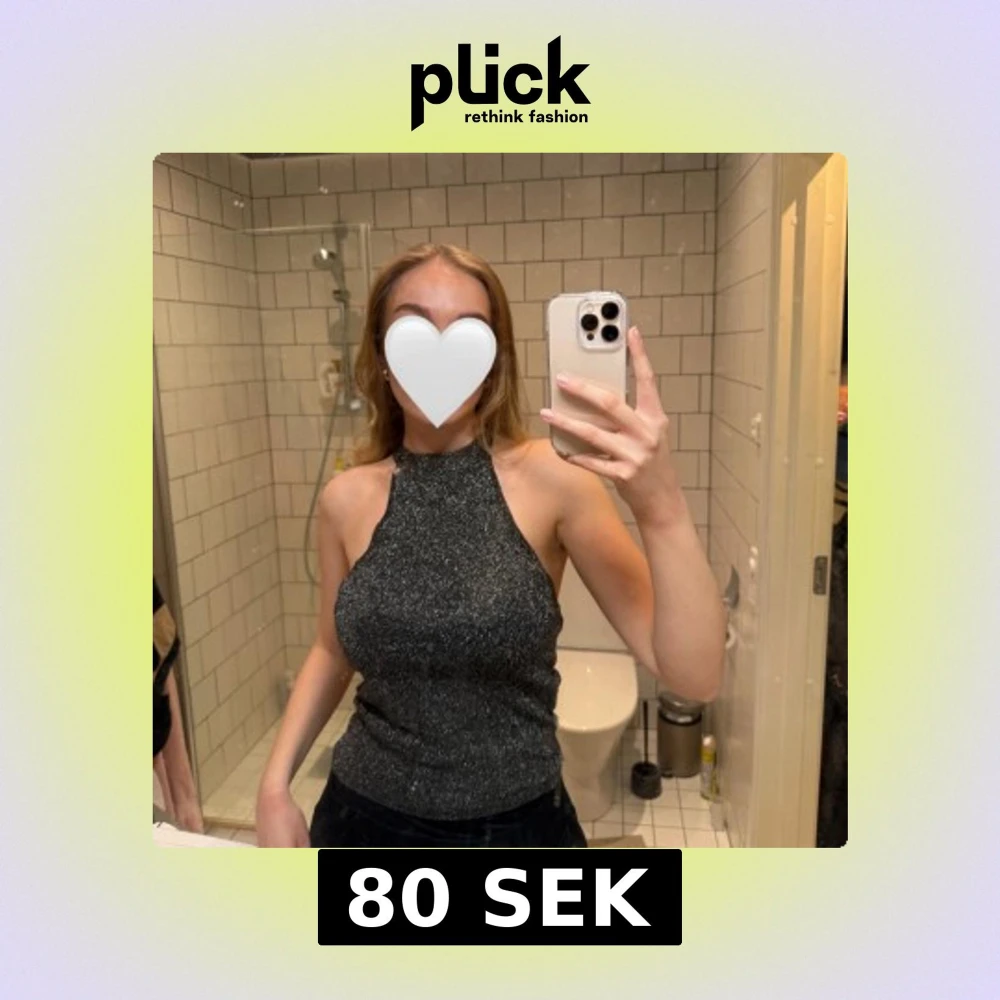 Snygg glittrig ärmlös topp med knytning i nacken. Perfekt för en kväll ute eller festliga tillfällen. Toppen har en tight passform och är i en mörk färg som ger en elegant look.