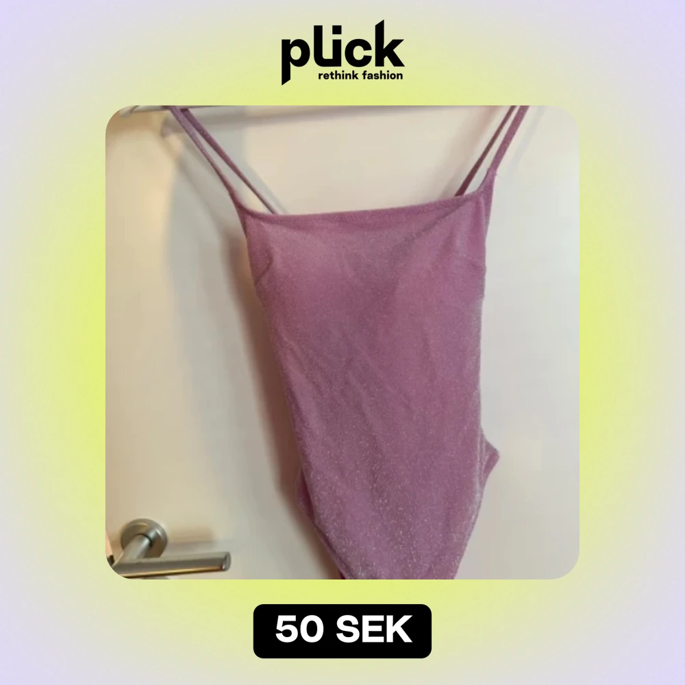 Glittrig rosa baddräkt med öppen rygg, kan utan tvekan användas som en body med ett par snygga byxor till! Oanvänd
