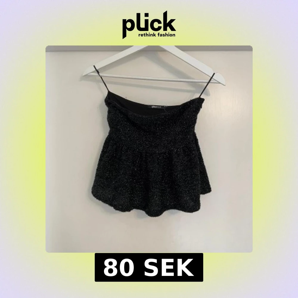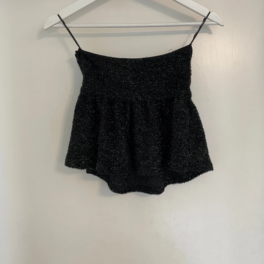 Supersnygg svart glittrig linnetopp från Gina Tricot med lätt utställd passform. Perfekt för att sticka ut med sitt skimrande material och trendiga look. Toppen har en mjuk struktur och är riktigt bekväm att bära.
