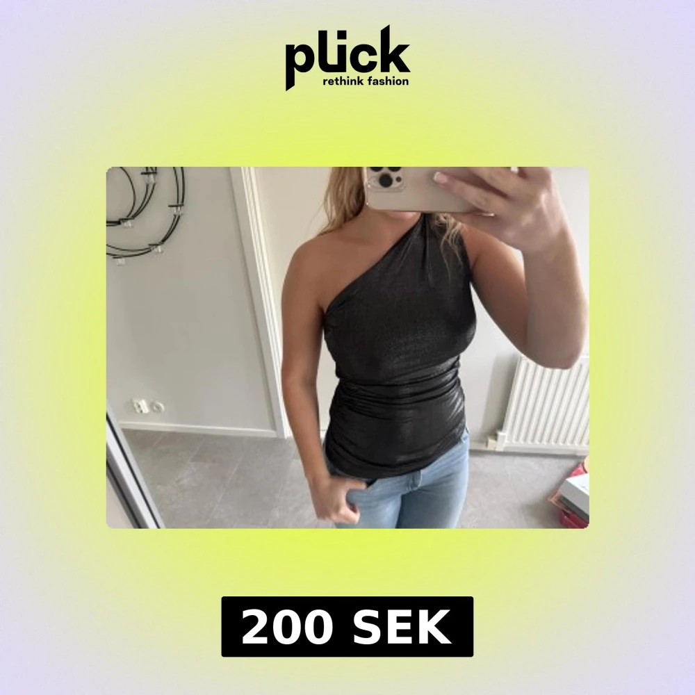 Säljer en snygg svart topp med glittrigt tyg och oneshoulder-design. Materialet är mjukt och stretchigt syntet, perfekt för att sticka ut. Perfekt till nyår!