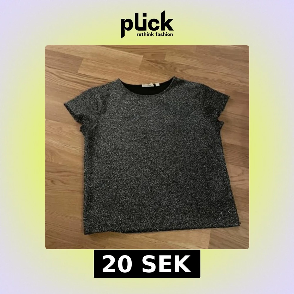 Snygg svart glittrig topp från KappAhl med korta ärmar och rund halsringning. Perfekt när du vill sticka ut lite extra. Toppens material har en skimrande yta som fångar ljuset och ger en cool look.