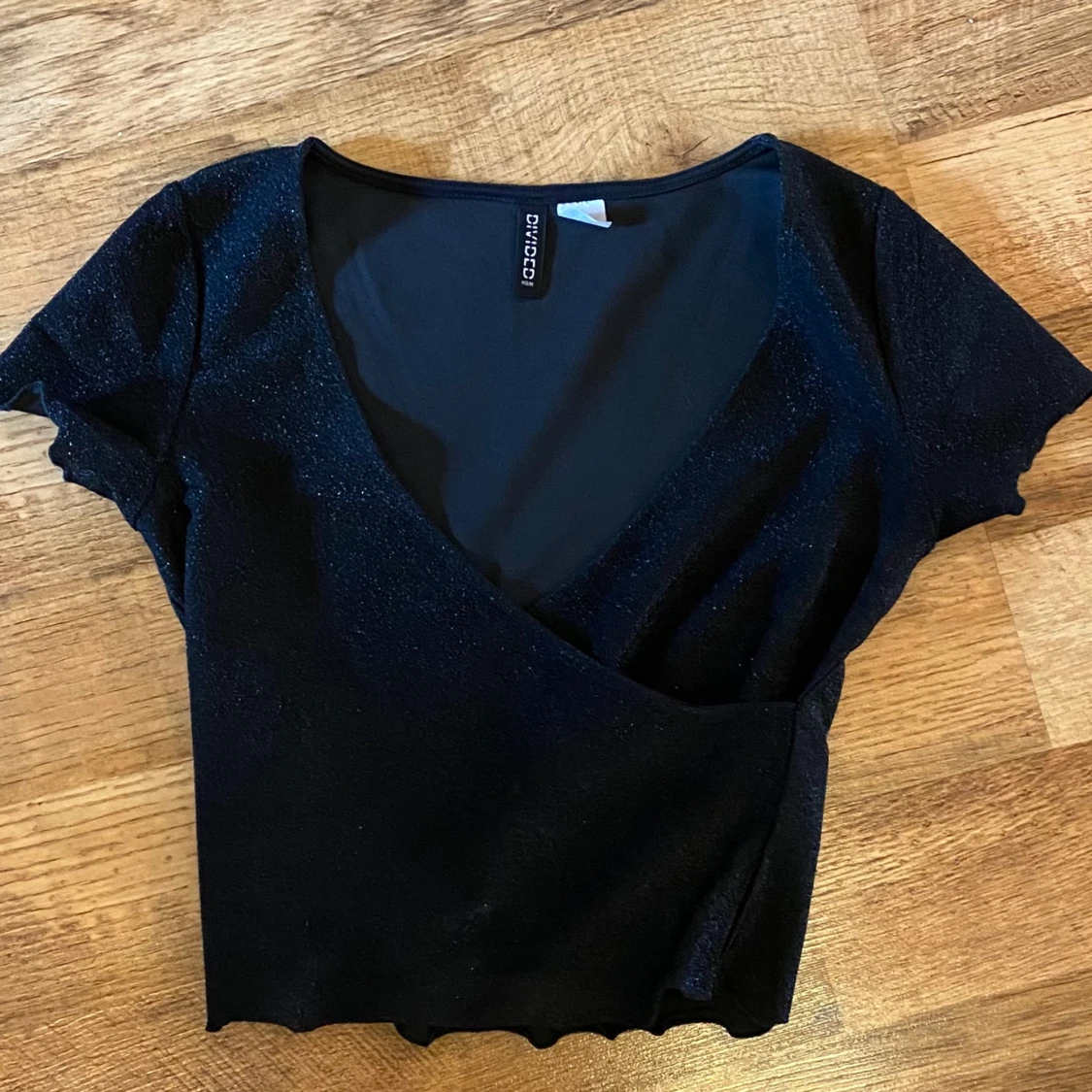 Glittrig festlig topp från H&M med djup urringning, använd en gång bara!