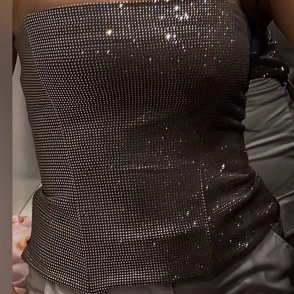 Glittrig top/korsett från Zara som är täckt i stenar/paljetter. Toppen är liten i storleken så jag har den i storlek M och skulle säga den passar för såna som är S/M. Har använt toppen 2 gånger och nu kommer den inte till användning längre. Toppen har en osynlig dragkedja vid sidan. Toppen har tyvärr tappat 4-5 stenar vid ryggen och en på framsidan men det syns bara om man kollar noga. Kontakta mig för mer information💓