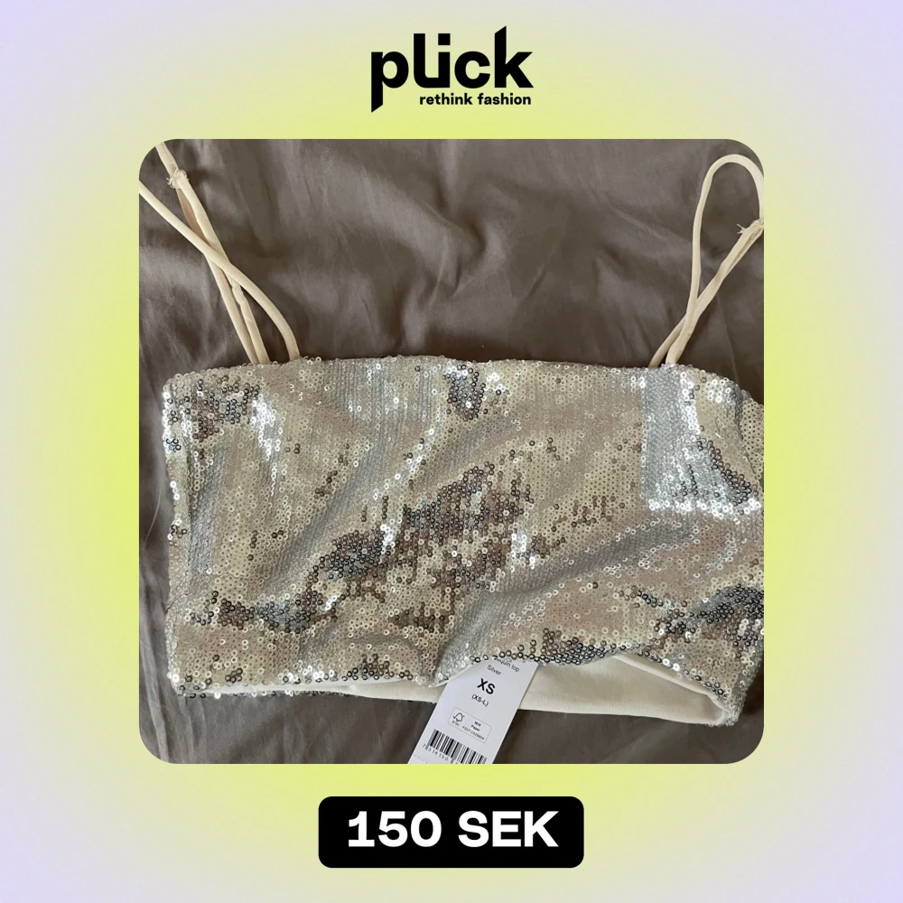 Säljer en superglittrig tubtopp i silver med paljetter över hela ytan. Perfekt för fest eller nyår! Den har tunna axelband och har en tight passform. Toppen är i nytt skick och har fortfarande etiketten kvar. Gör dig redo att glänsa! ✨🤍