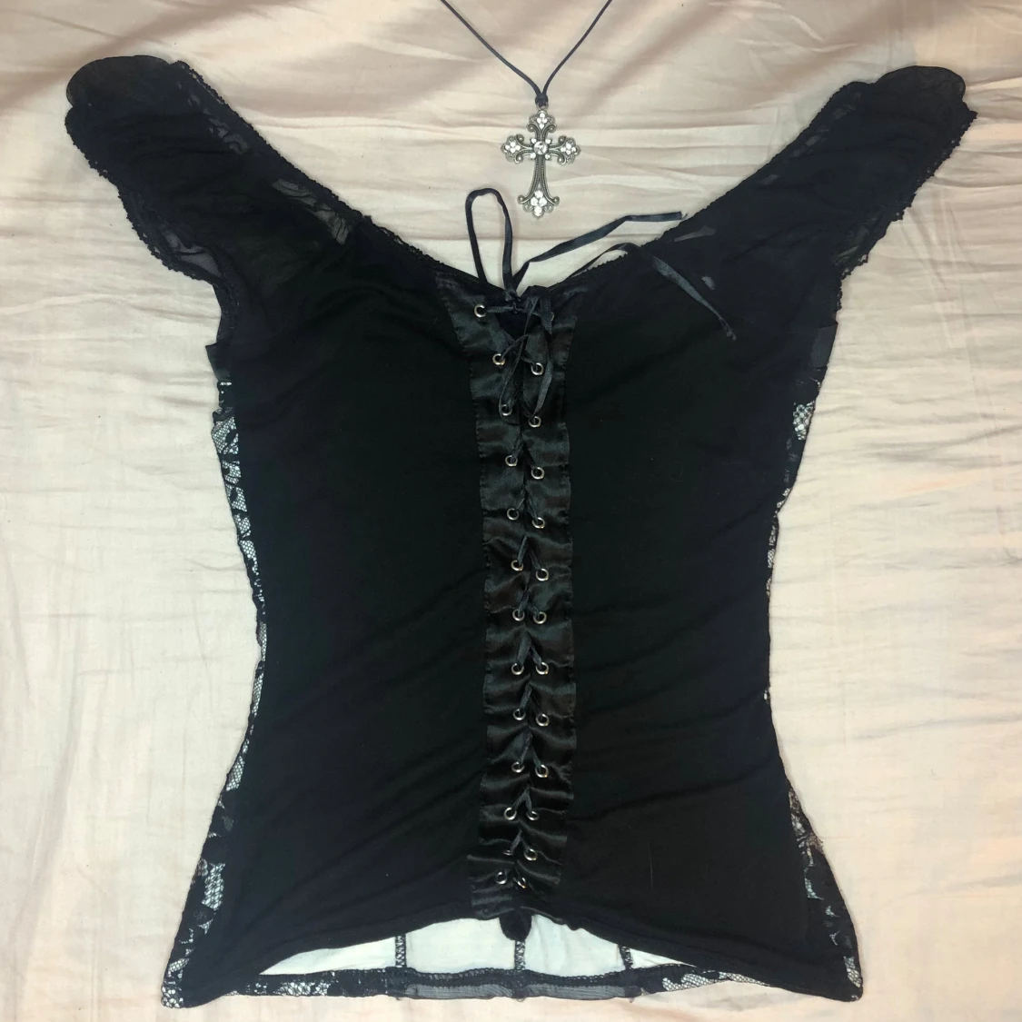 Jättevacker topp med snörning på baksidan. Storlek M men justerbar med hjälp av snörningen🖤