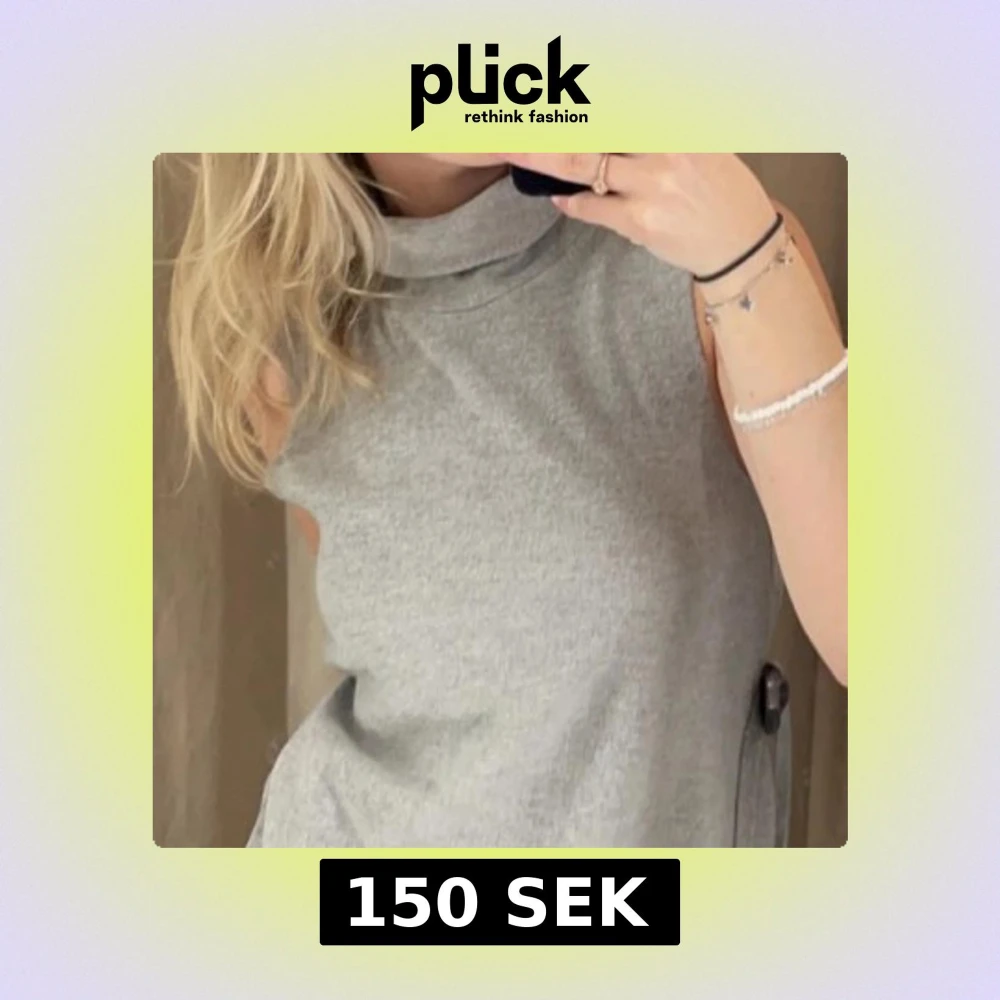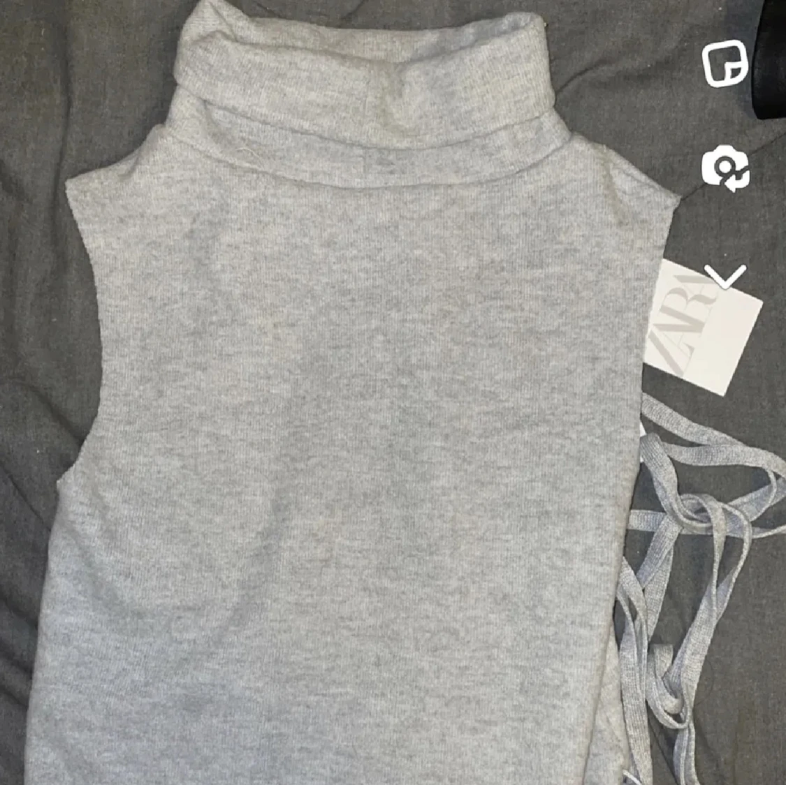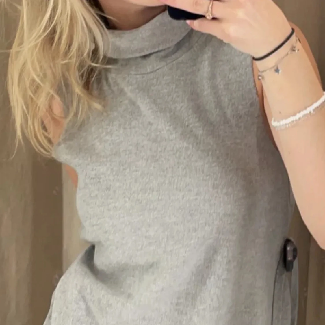 Säljer en stilren grå ärmlös polotopp från Zara. Toppen har en hög krage och är tillverkad i mjukt material, perfekt att styla till olika outfits. Enkel och modern design som passar till mycket.