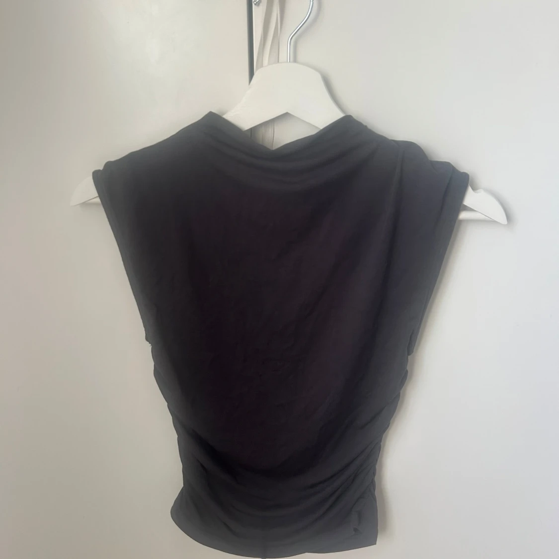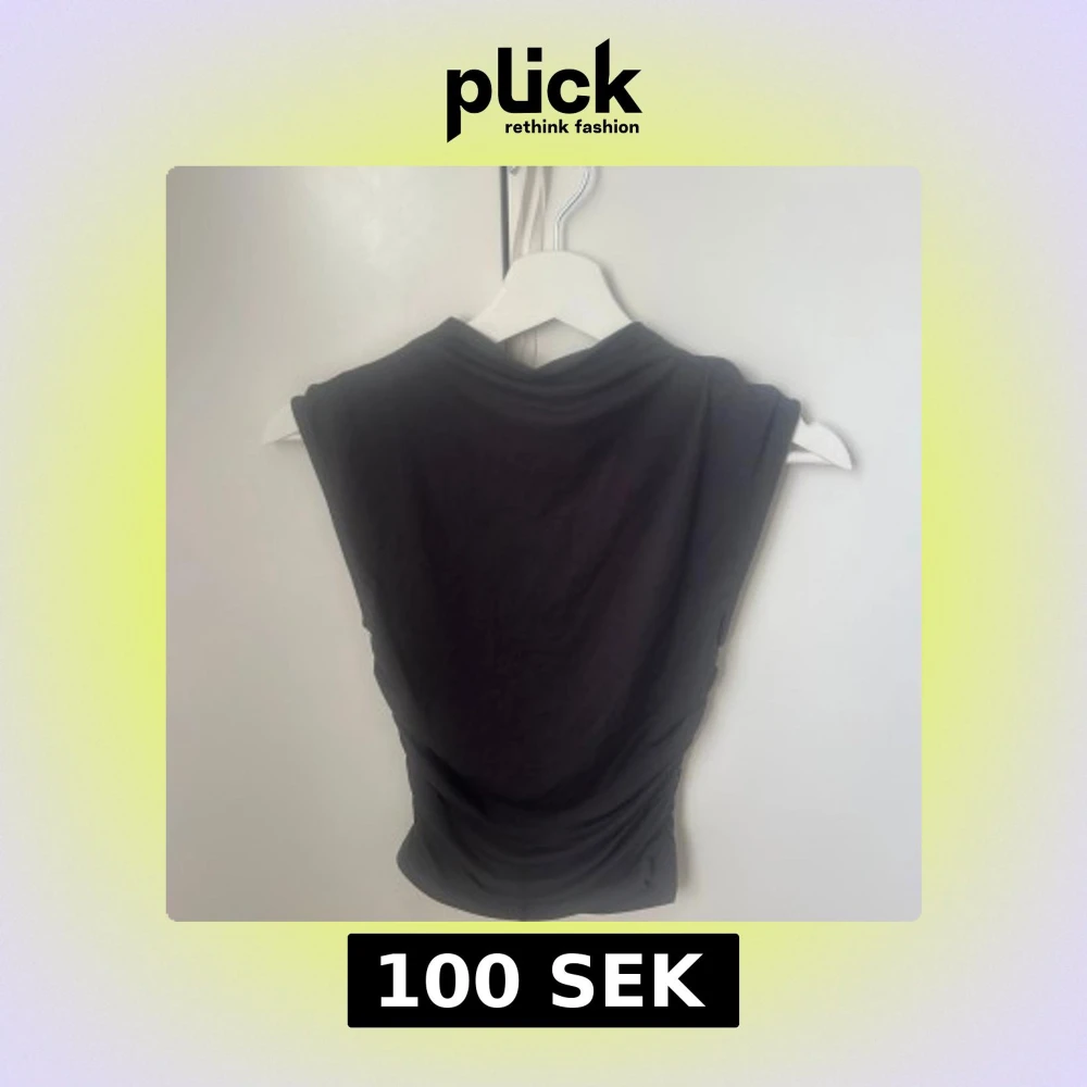 Säljer en grå/blå ärmlös topp från Gina Tricot. Toppen har en tight passform och är lätt rynkad i sidorna för en snygg siluett. Perfekt att matcha med jeans eller kjol för en trendig look.