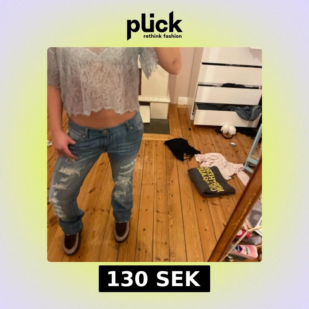 En jätte fin spetsblus i ljus blå grå färg. (Säljer även jeansen om du är intresserad )