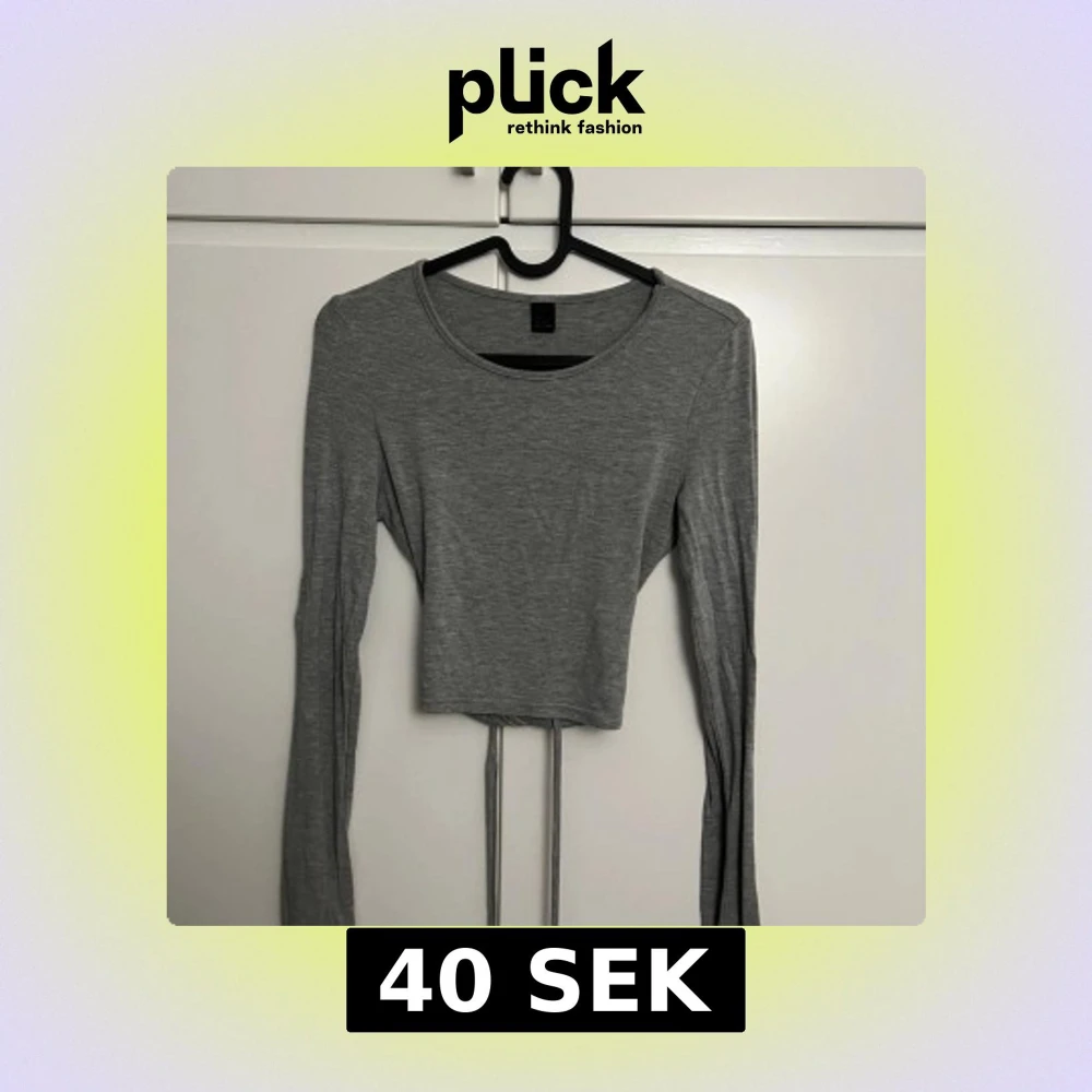 Säljer en stilren grå croppad topp med långa ärmar och snörning framtill och baktill. Toppen har en rund halsringning och är gjord i mjukt bomullsmaterial som sitter skönt mot kroppen. Perfekt för dig som gillar enkla men snygga detaljer.