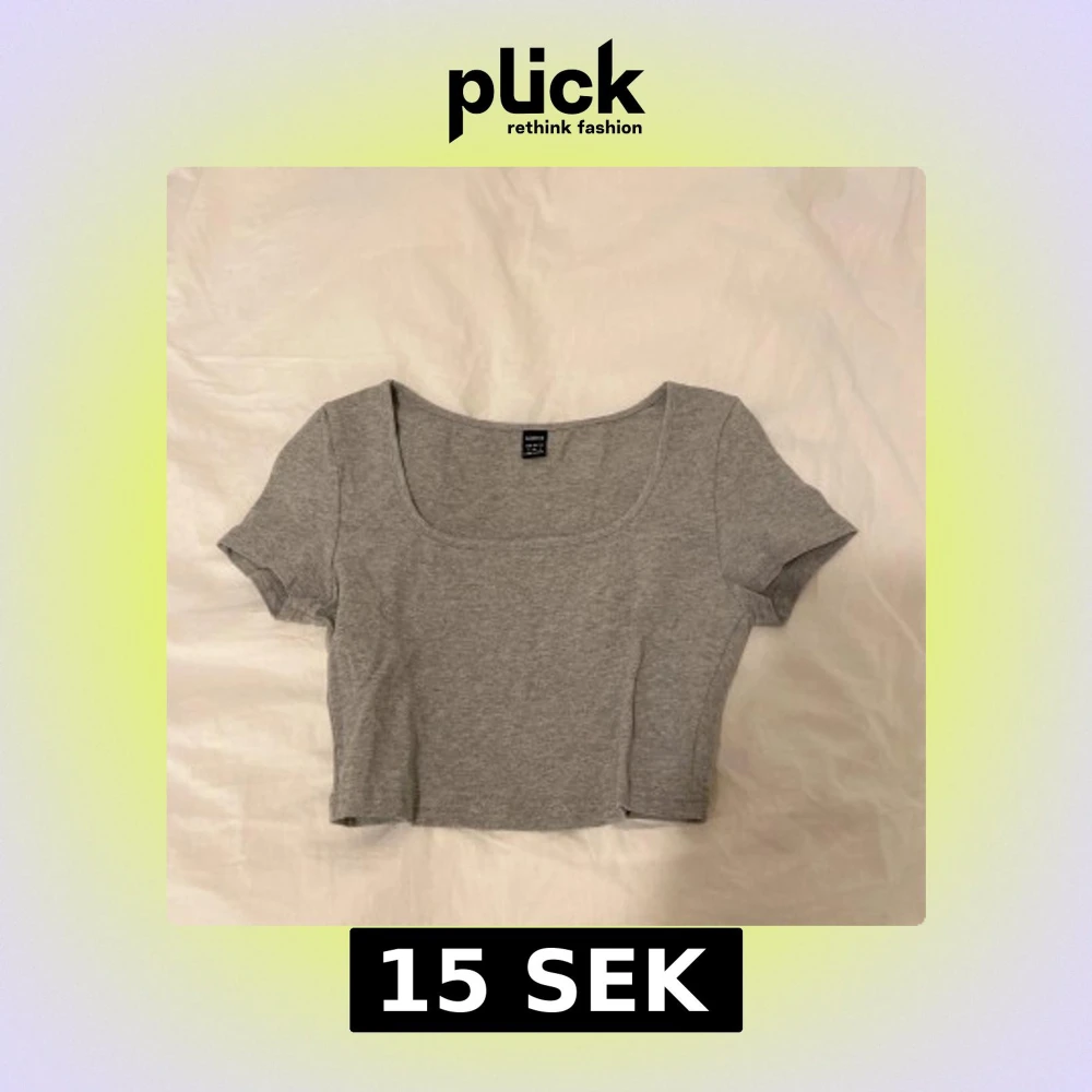 En enkel och stilren grå croppad topp från SHEIN i storlek S med korta ärmar och rundad, djup urringning. Tillverkad i mjuk bomullsmix som känns skön mot huden. Perfekt att matcha med höga jeans eller kjol för en chill look.