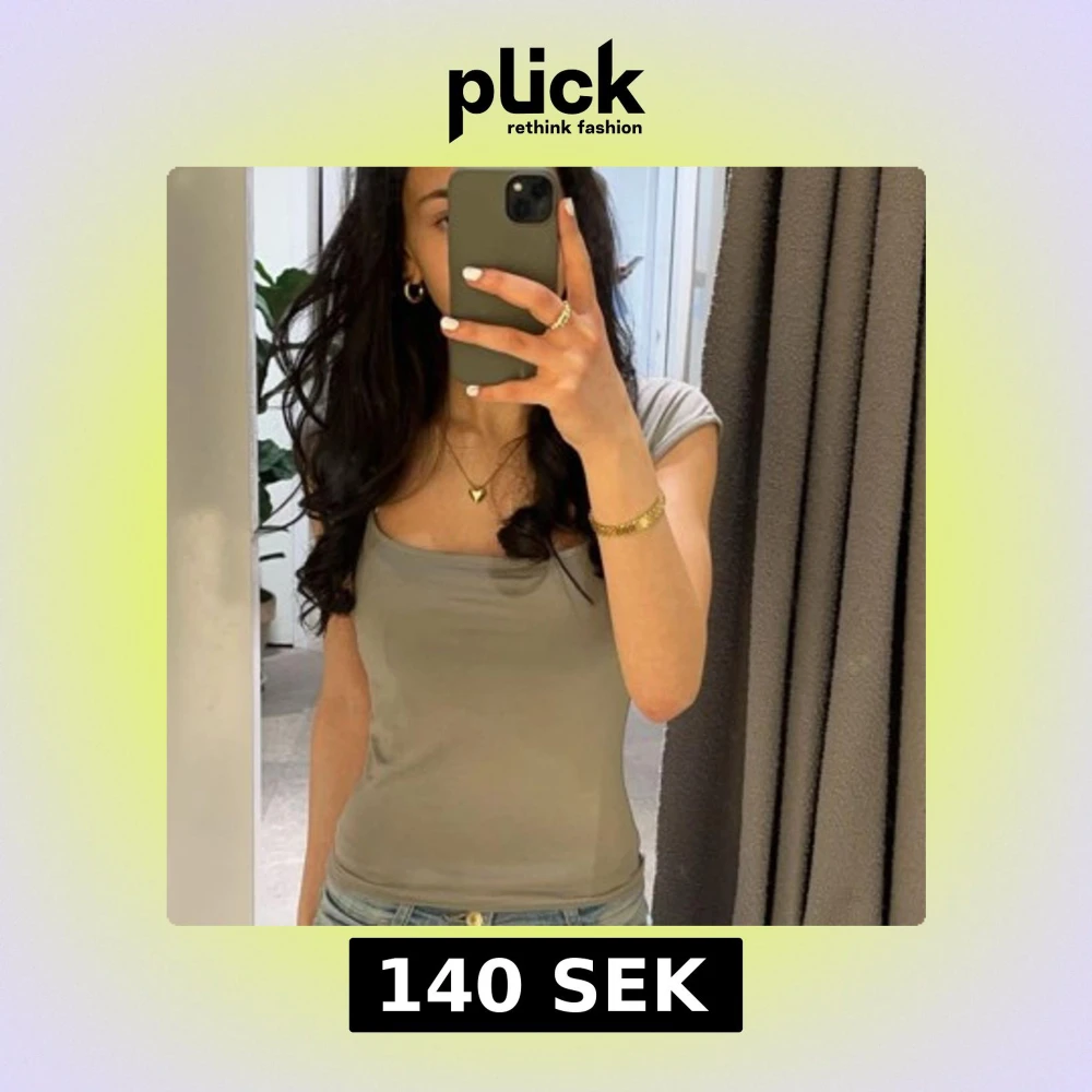 Säljer en stilren beige/grön kortärmad topp med rund halsringning. Perfekt för en avslappnad look. Passar bra till jeans eller kjol. I nytt skick men utan prislappen på.