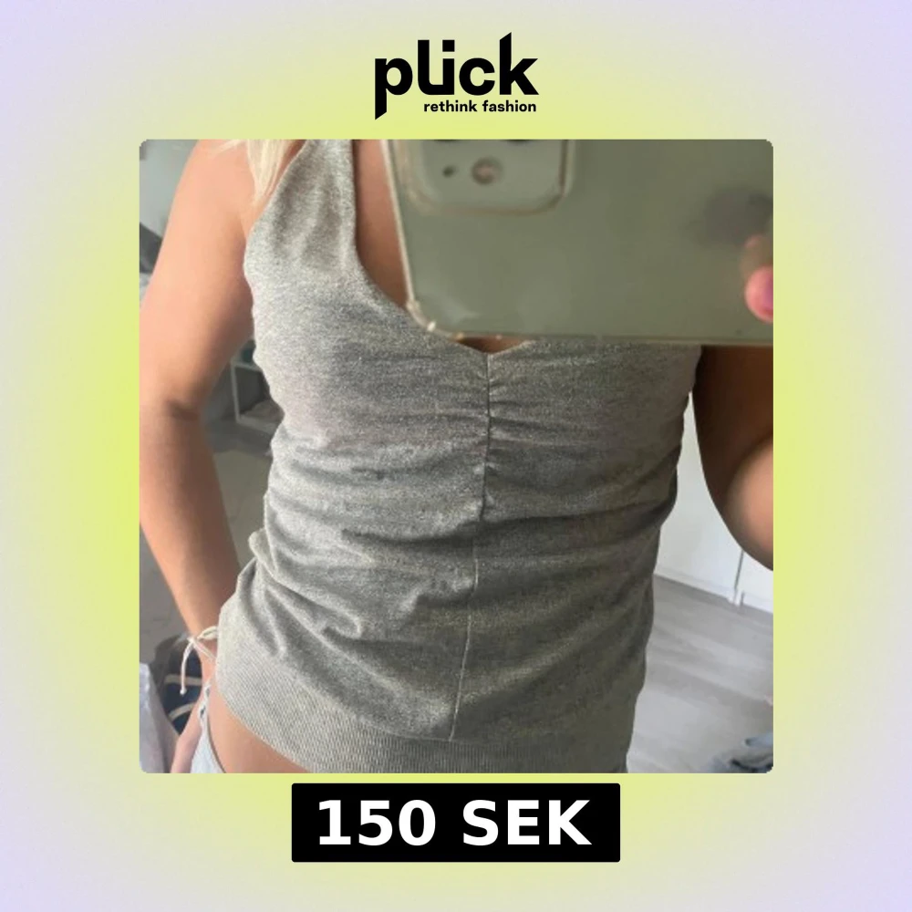 Snygg grå halterneck linnetopp med v-ringning och rynkade detaljer framtill. Toppen är ärmlös och har breda axelband som knyts runt nacken. Mjuk och stretchig bomullsblandning, perfekt till jeans eller kjol.