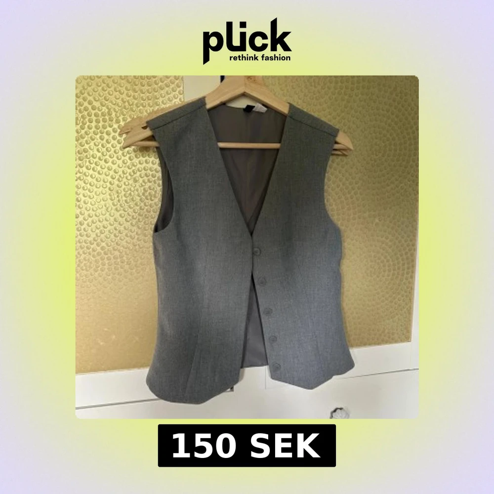 Stilren grå väst med knappar framtill och klassisk v-ringning. Perfekt för att lyfta en skjorta eller t-shirt. Västen har en figurnära passform och är tillverkad i ett slätt tyg som ger en dressad look.