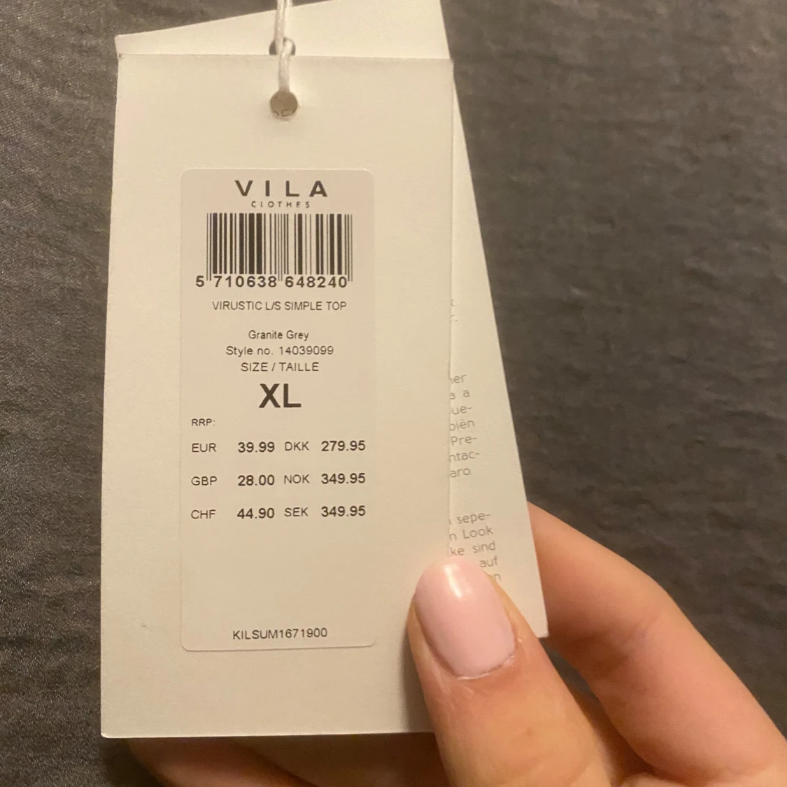 Säljer en stilren grå långärmad topp från Vila. Perfekt för en avslappnad look med sin enkla design och mjuka material. Toppen har en rund halsringning och är i storlek XL.