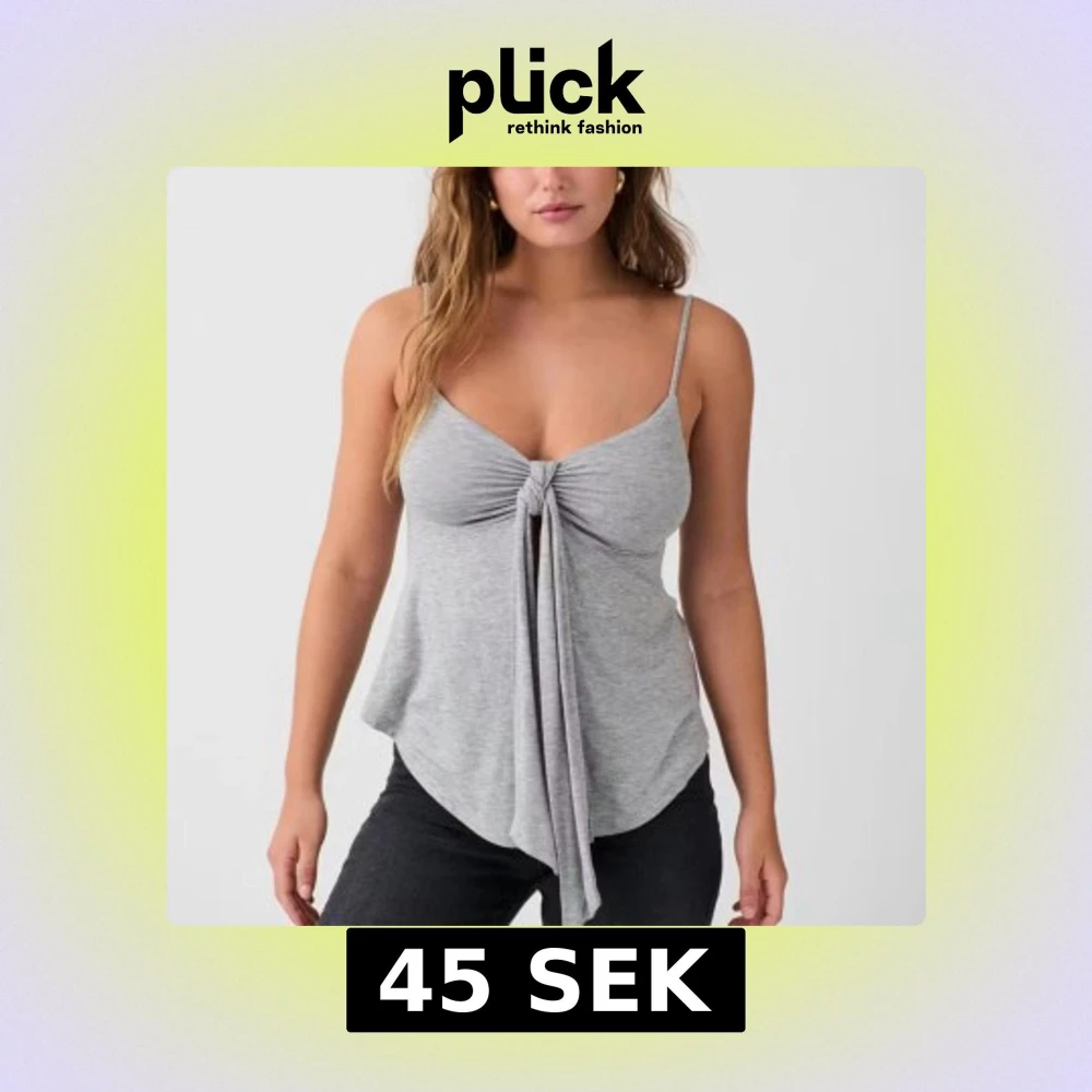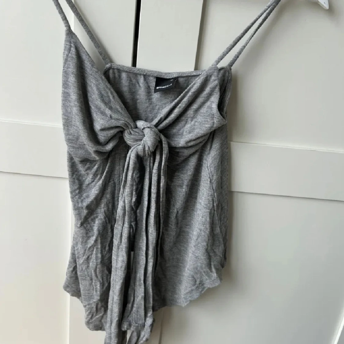 Snygg grå linnetopp med smala axelband och knyt framtill som ger en cool detalj. Toppen har en lätt utsvängd passform och är perfekt för varma dagar. Mjuk och skön känsla mot huden.