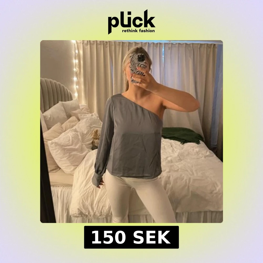 Snygg grå oneshoulder topp med lång ärm på ena sidan. Perfekt för en stilren look med en unik twist.