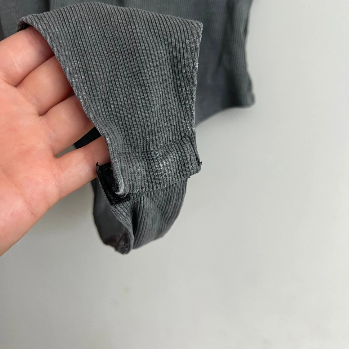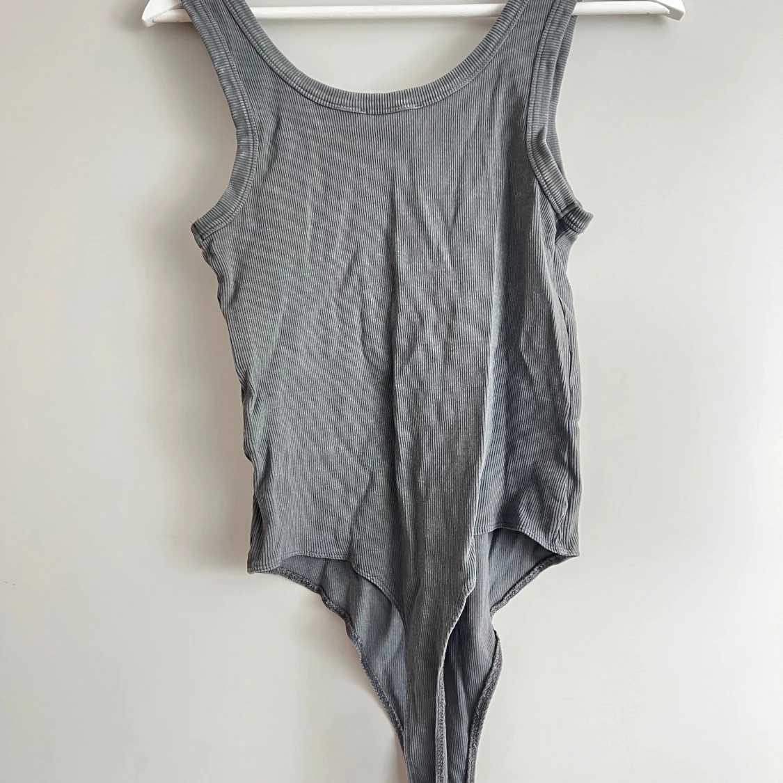Säljer en snygg grå ribbad bodysuit från New Look. Den är ärmlös och har en tight passform, perfekt för att styla med jeans eller kjol. Materialet är mjukt och stretchigt, vilket gör den bekväm att bära hela dagen.
