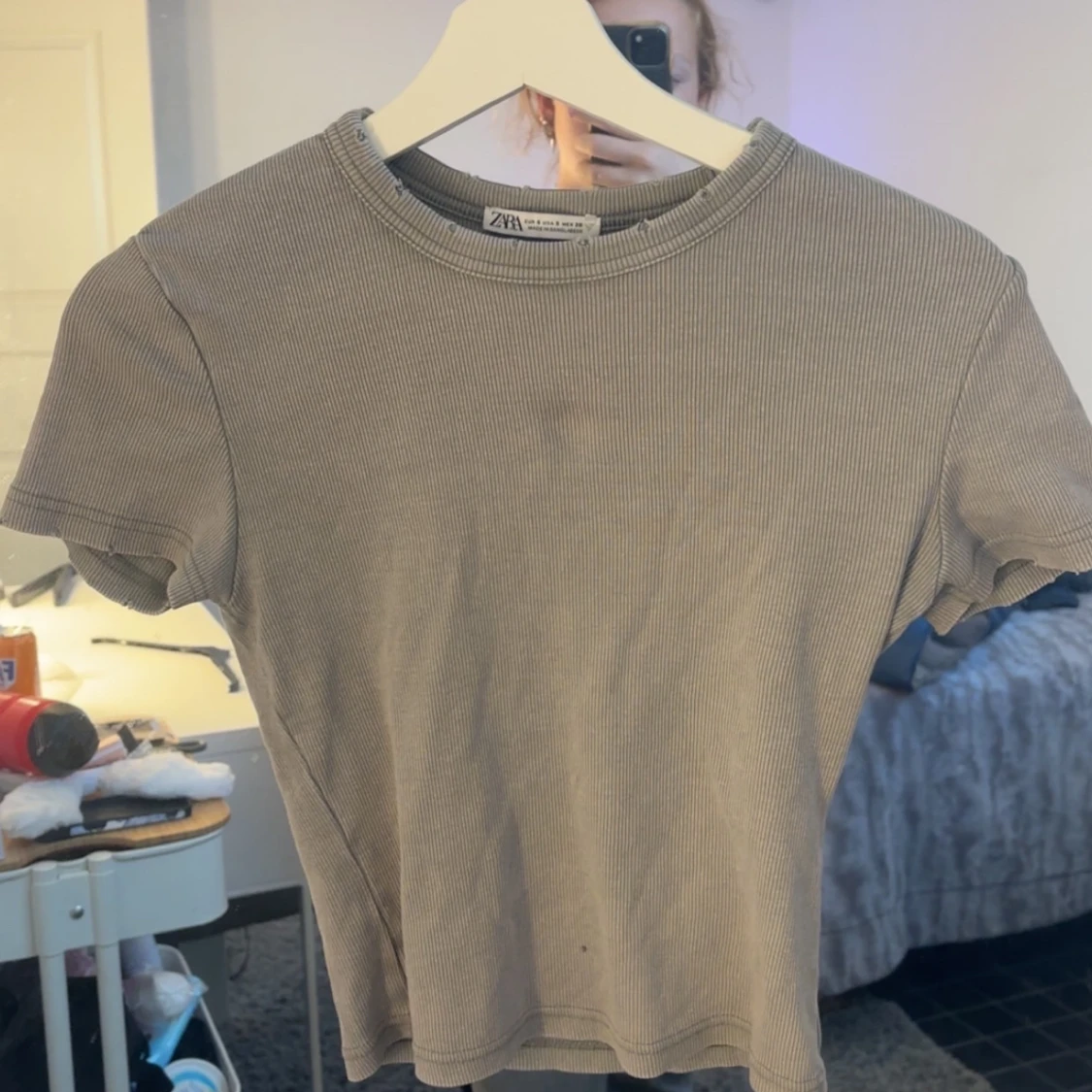 Grå ribbad croppad topp från Zara
