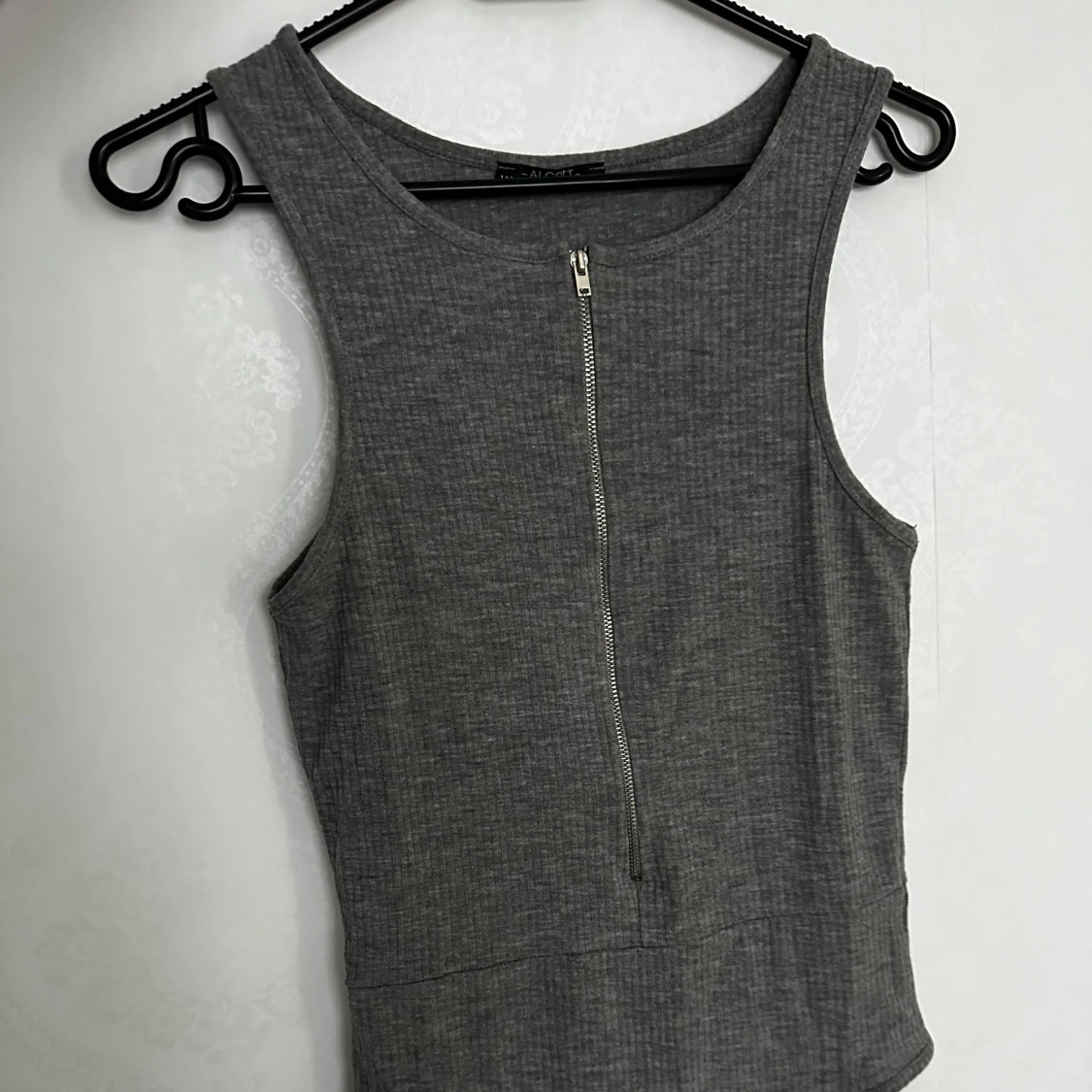 Säljer en snygg grå ribbad linnetopp från Alcott i storlek medium. Toppen har en dragkedja framtill som ger en cool detalj. Perfekt för en casual look eller att styla upp för fest!