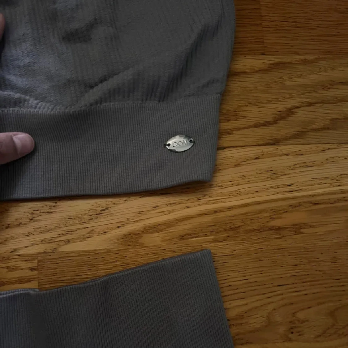 Grå ribbad linnetopp och träningsbyxor från DOM