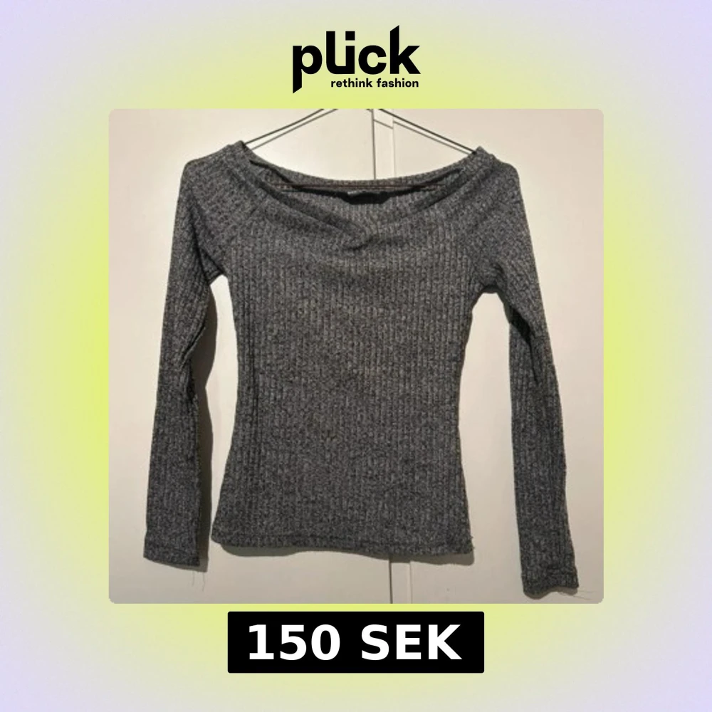Grå långärmad topp från Shein i ribbat material med offshoulder-skärning. Snygg, figurnära passform och mjuk känsla. Perfekt att styla med jeans eller kjol för en trendig look. Toppen till hösten!