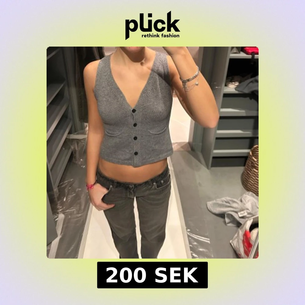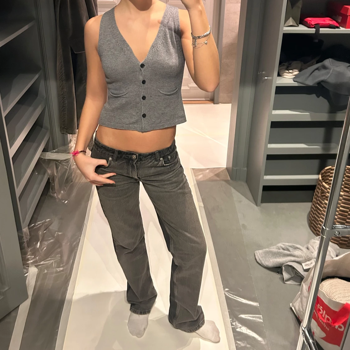 Snygg grå ribbad väst med knappar framtill. Västen är ärmlös och har en v-ringad design som ger en stilren look. Perfekt för att lägga till en extra touch till din outfit.