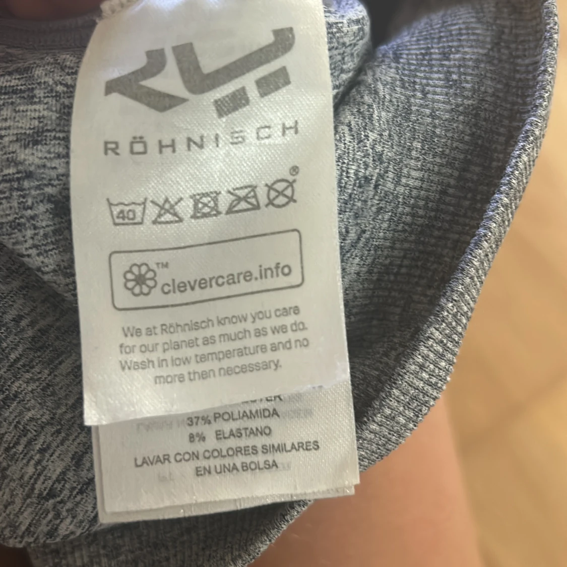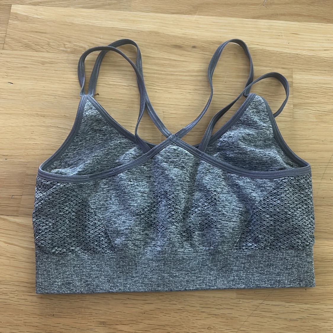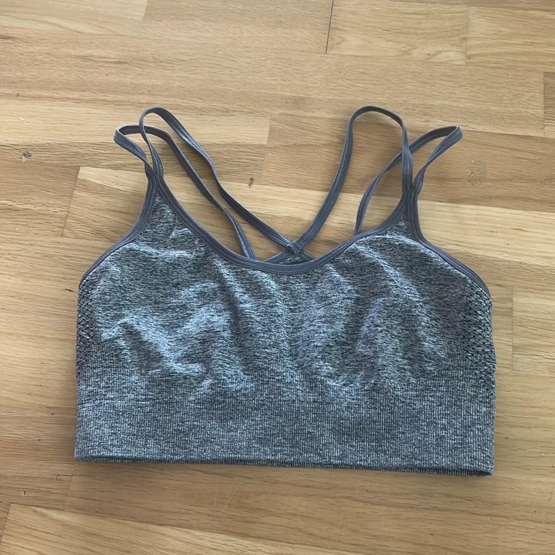 Säljer en grå sporttopp från Röhnisch med smala korsade axelband och melerat mönster. Toppen är tillverkad i ett stretchigt material med polyamid och elastan, perfekt för träning. Snygg och enkel design som sitter skönt på kroppen.