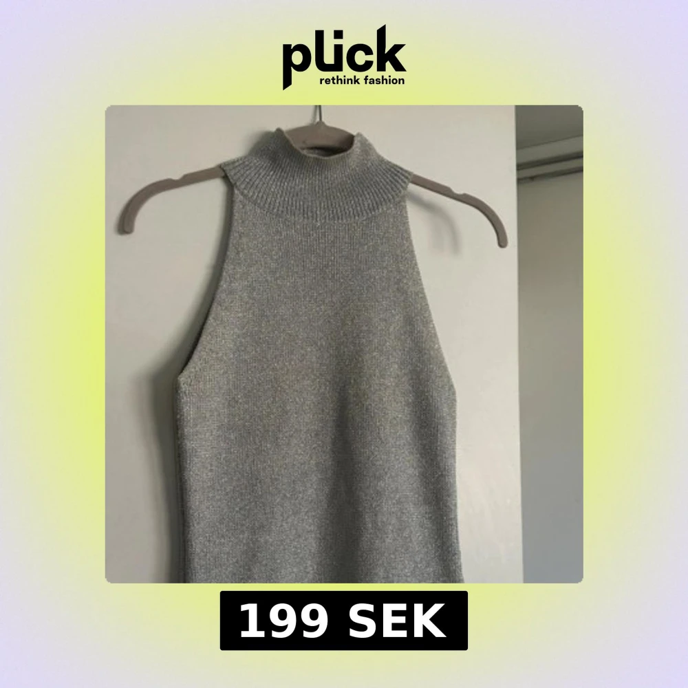 Snygg grå stickad polotopp med hög krage och ärmlös design. Perfekt för lager-på-lager eller att bära som den är. Tidlös och enkel att matcha med olika stilar.