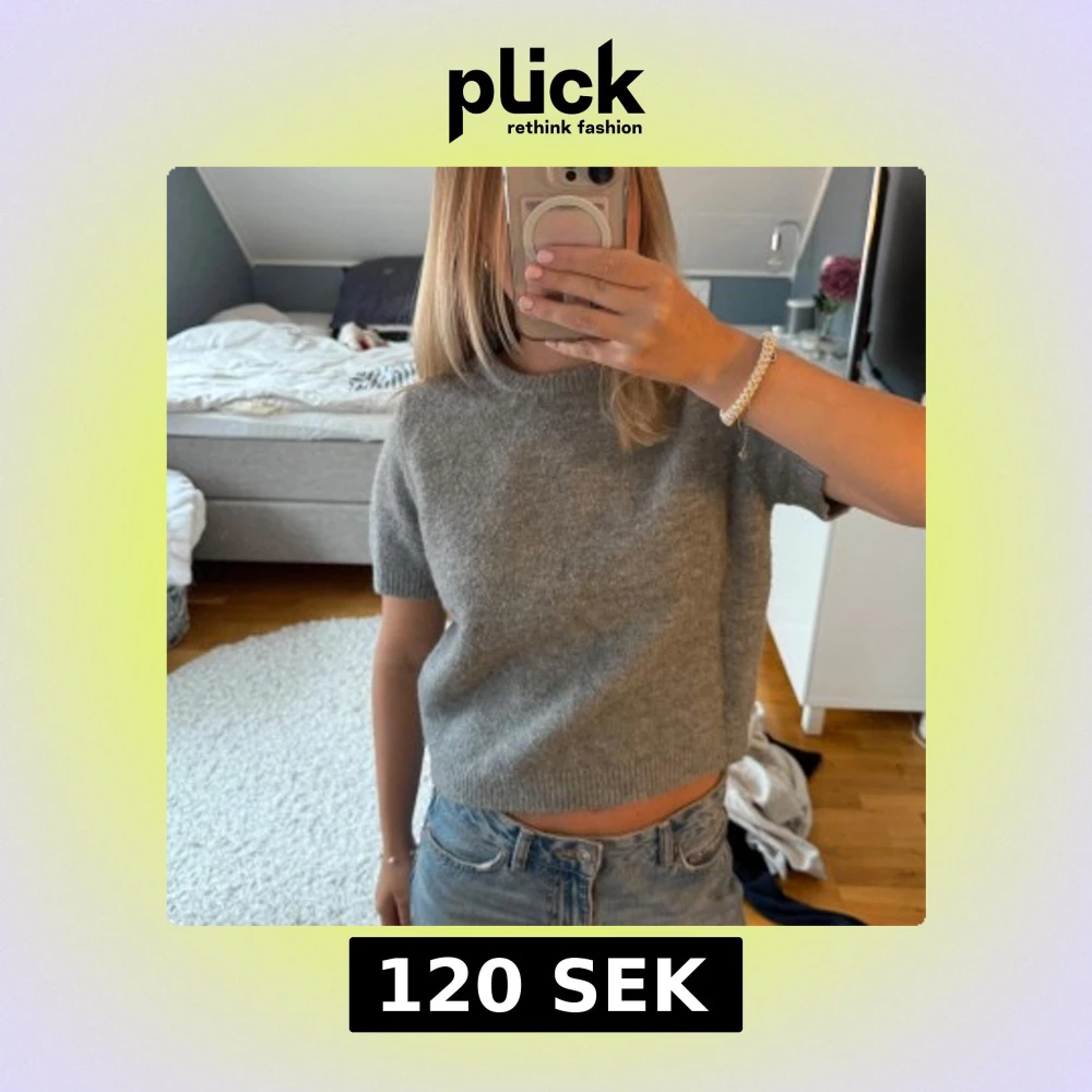 Supermjuk grå stickad tshirt från Zara med korta ärmar och rund halsringning. Jätteskönt material och i bra skick. Lite liten i storleken☺️