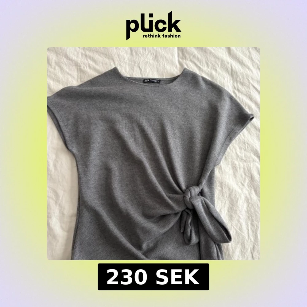 Säljer en grå stickad topp från Zara med korta ärmar och rund hals. Toppen har en snygg knytdetalj i sidan. Använd endast vid ett tillfälle.🙌🏻🙌🏻