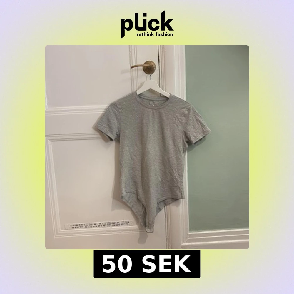 Säljer en grå stretch body från Primark. Den har korta ärmar och en rund halsringning. Perfekt för en enkel och bekväm stil.