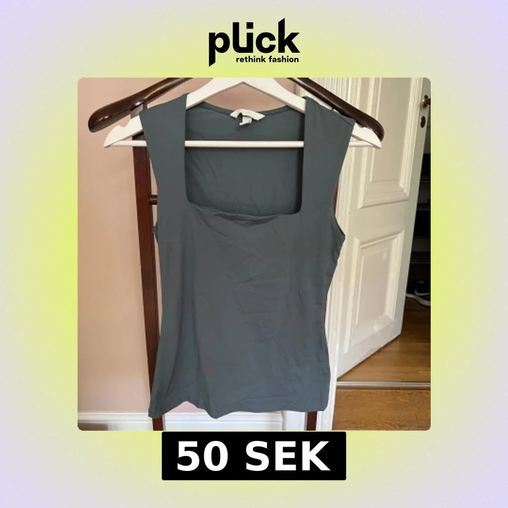 Snygg grå linnetopp från H&M med breda axelband och fyrkantig urringning. Jätteskön material som sitter figurformat på🥰🥰