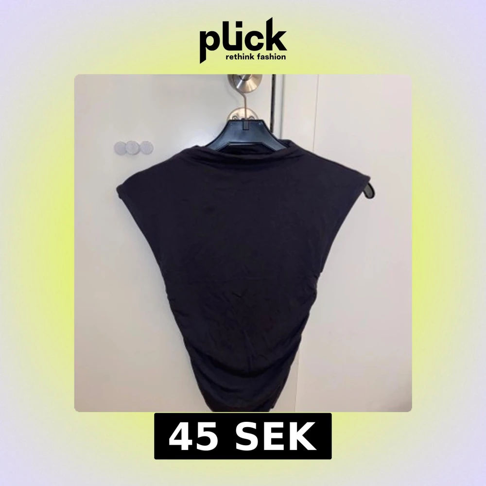 Mörk grå ärmlös topp från Gina Tricot i storlek XXS. Toppen har en tight passform med rynkade sidor som ger en snygg siluett. Tillverkad i mjuk bomull och passar perfekt till jeans eller kjol för en clean look.