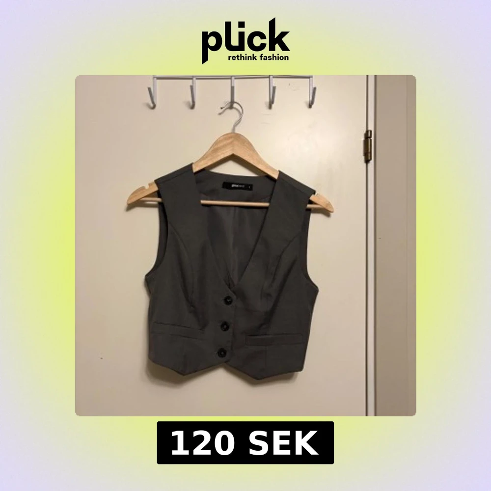 Stilren kroppad grå väst från Gina Tricot med tre knappar framtill och två dekorativa fickor. Klassisk passform med v-ringning, perfekt att styla över en skjorta eller t-shirt. Gjord i ett slätt tyg som ger en dressad look.