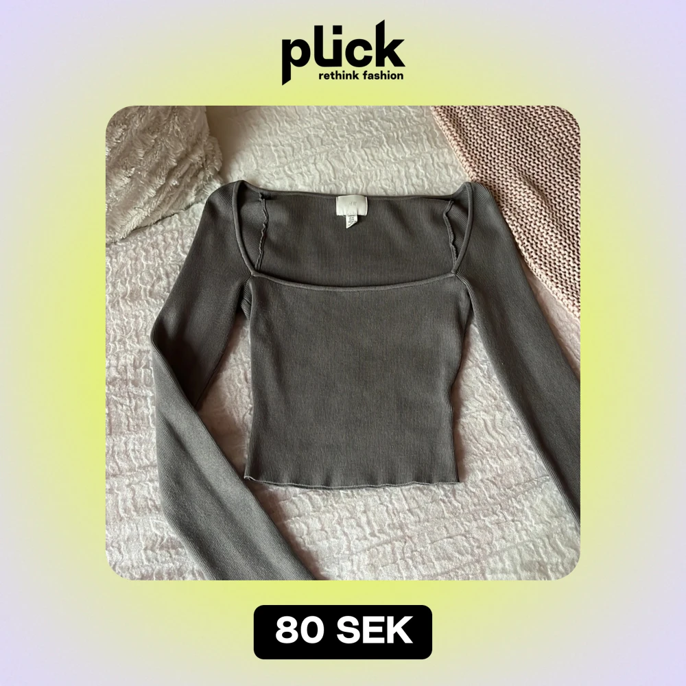 Snygg grå ribbad topp från HM i storlek xs. Den har en fyrkantig halsringning och långa ärmar, perfekt för både vardag och fest. Toppen är i ett mjukt och stretchigt material som sitter bekvämt på kroppen.