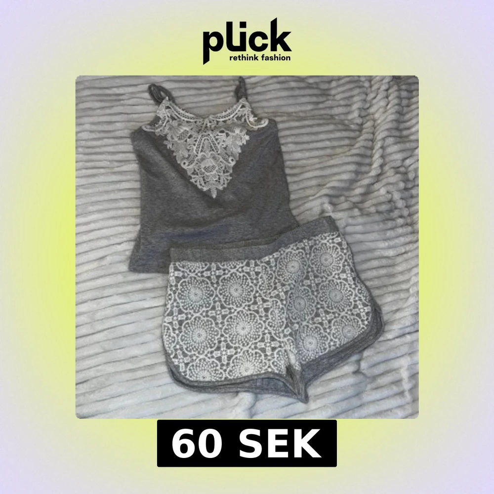 Säljer ett grått pyjamasset med vita spets detaljer. 60kr+frakt