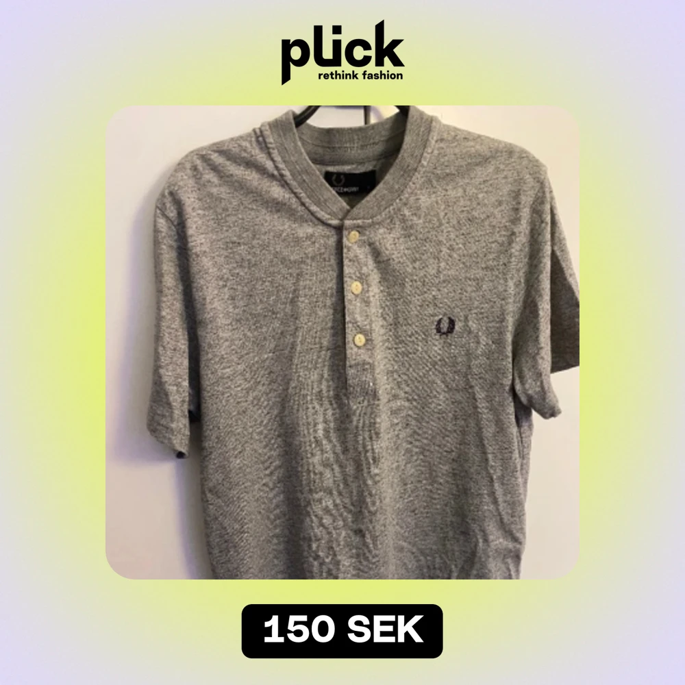 Grå Fred Perry pikétröja, Strl: M, mindre hål vid lappen på baksidan, Material: 100% Bomull, skick 3/5.