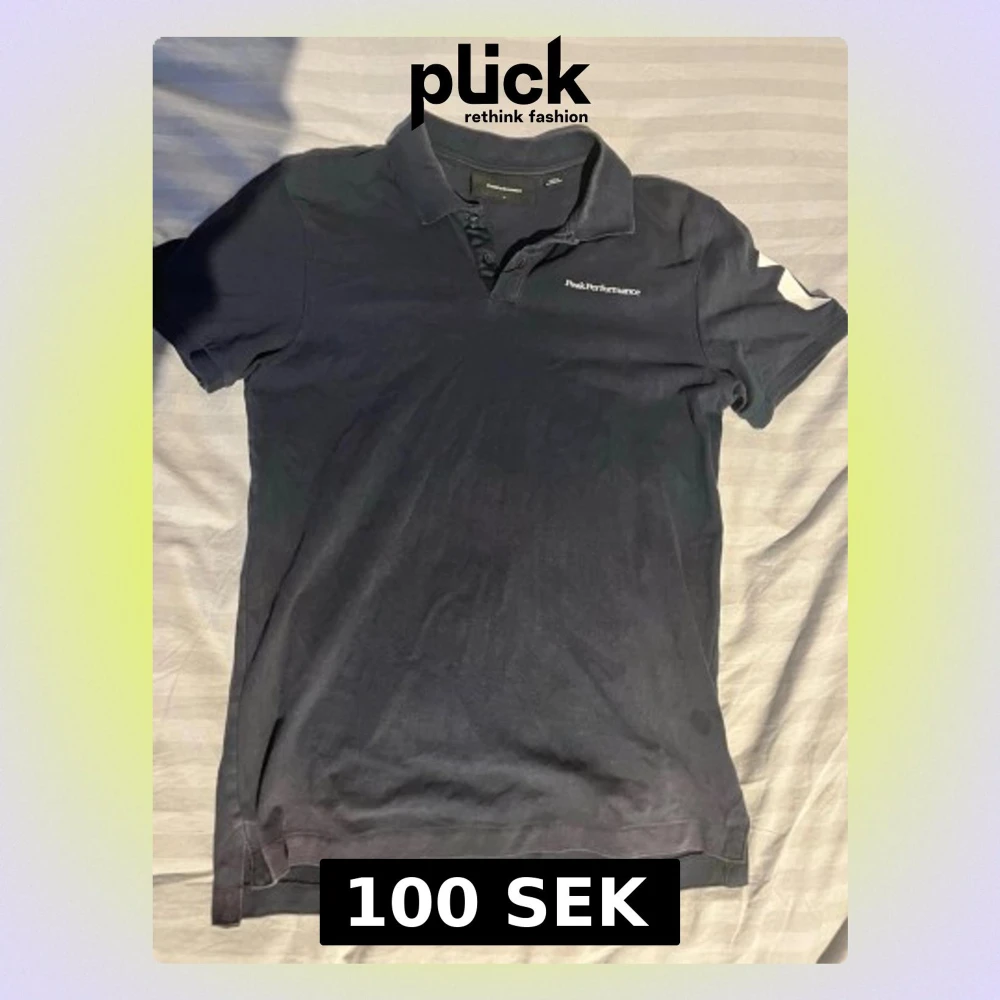 Klassisk marinblå pikétröja från Peak Performance med vit logga på bröstet. Tröjan har krage, knappar vid halsen och korta ärmar. Perfekt till både jeans och shorts för en clean och sportig look.