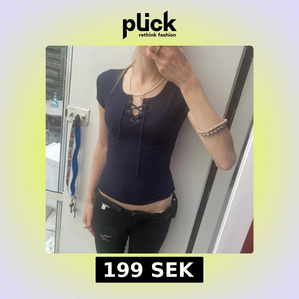Snygg mörkblå ribbad topp från Hollister med korta ärmar och snörning . Figurnära passform och mjukt stretchigt material som sitter perfekt. Passar xxs-s