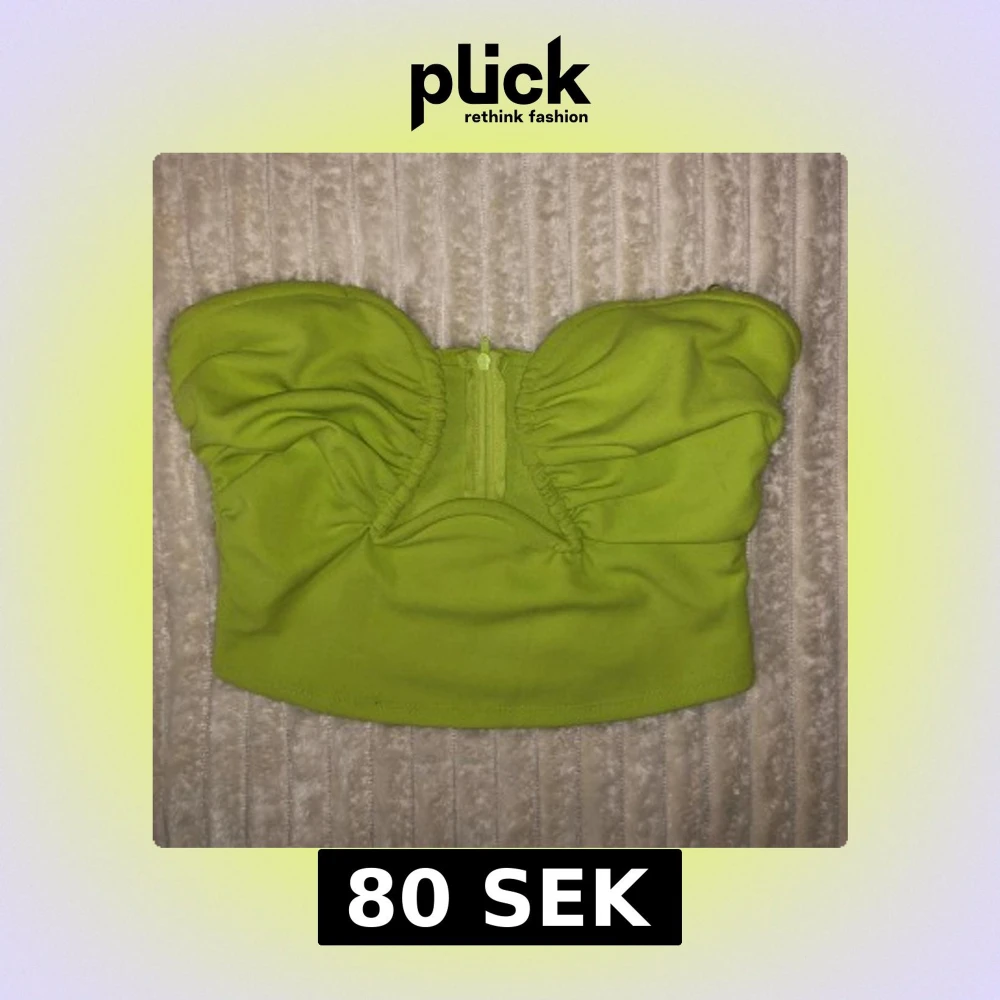 Snygg grön axelbandslös topp. Använd en gång. Perfekt för en somrig look eller en utekväll. Toppen har en smickrande passform med rynkade detaljer framtill.