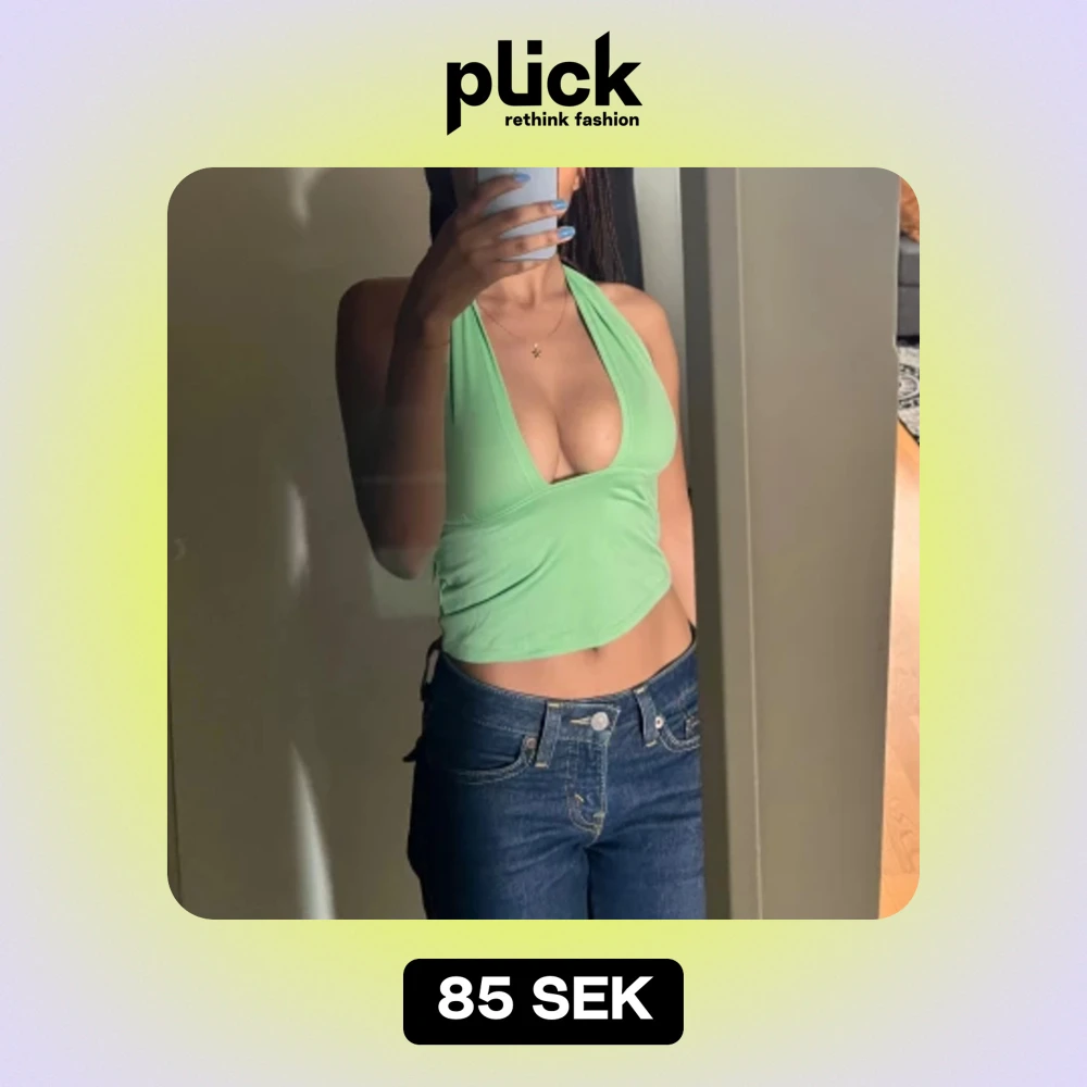 En halterneck topp i en fräsch grön färg. Den djupa urringningen och den tighta passformen gör denna topp till ett perfekt val för att framhäva din figur på ett smakfullt sätt. Knytning bakom nacken för justerbar passform