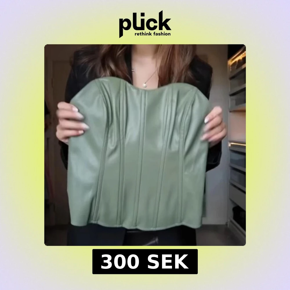 Snygg grön korsett med markerade sömmar och strapless design. Toppen är gjord i skinnimitation och har en figurnära passform som ger en cool och edgy look. Perfekt att styla med jeans eller kjol för en trendig outfit.